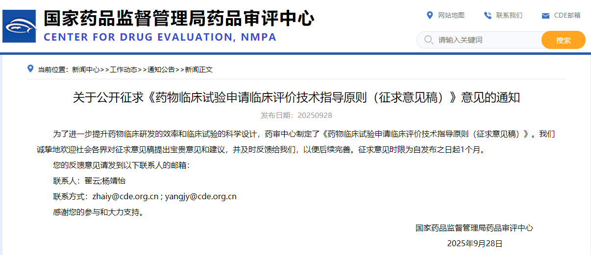 药物临床试验申请临床评价技术指导原则(征求意见稿)-2025年版