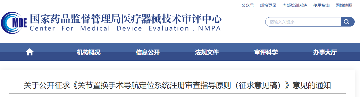 关节置换手术导航定位系统注册审查指导原则(征求意见稿)