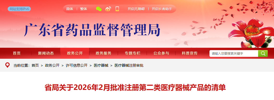 广东省26年2月份共批准注册第二类医疗器械产品210个(附名单)
