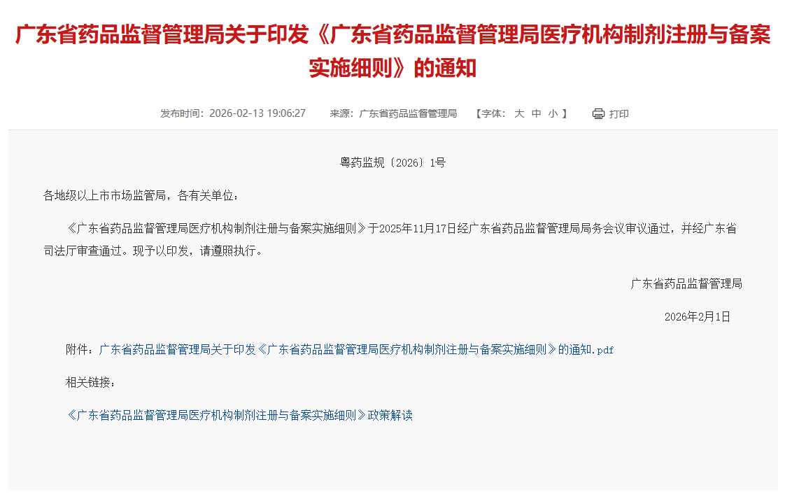 广东省药监局发布《广东省药品监督管理局医疗机构制剂注册与备案实施细则》(附全文)