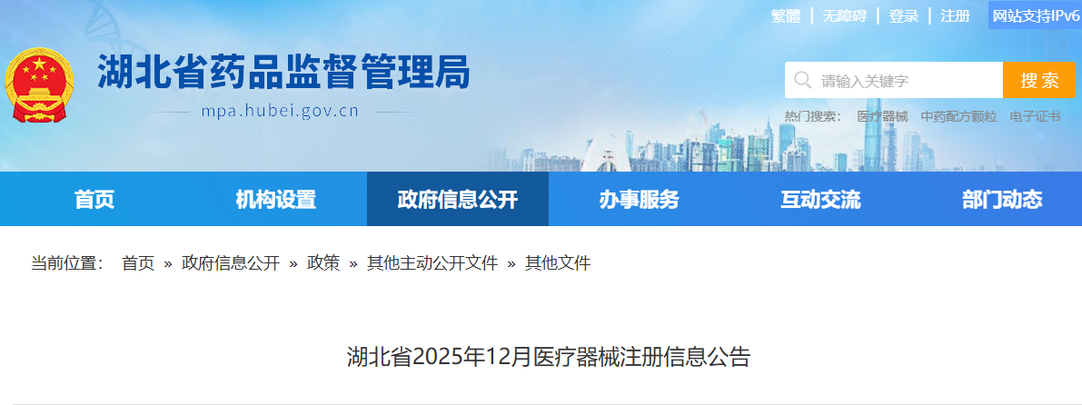 湖北省2025年12月共批准注册医疗器械产品60个(附名单)