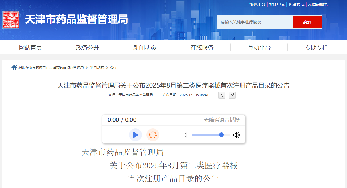 天津市25年8月第二类医疗器械首次注册产品目录(附名单)