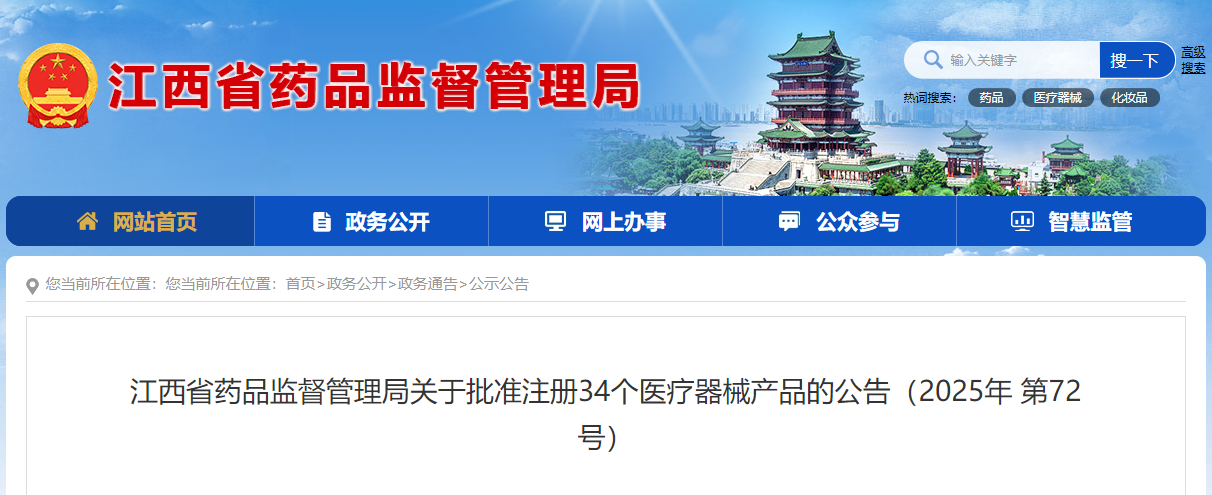 江西省25年8月共批准注册境内第二类医疗器械产品34个(附名单)