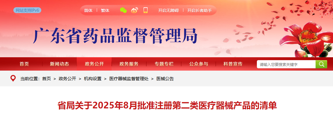 广东省25年8月共批准注册第二类医疗器械产品277个(附名单)