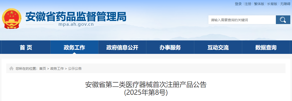 安徽省25年8月批准首次注册第二类医疗器械产品28个(附名单)