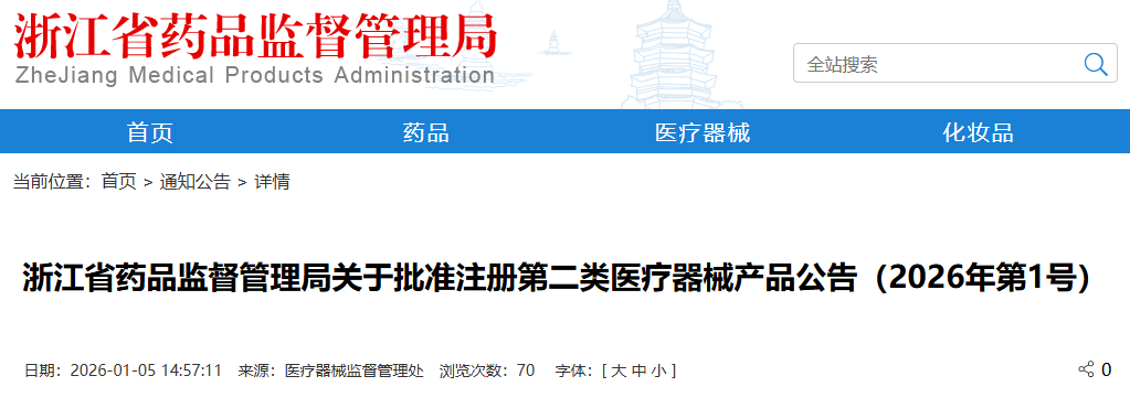 浙江省25年12月份共批准注册第二类医疗器械产品99个