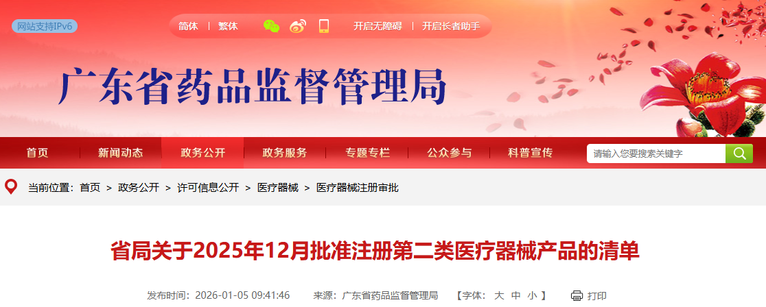 广东省25年12月份共批准注册第二类医疗器械产品321个(附名单)