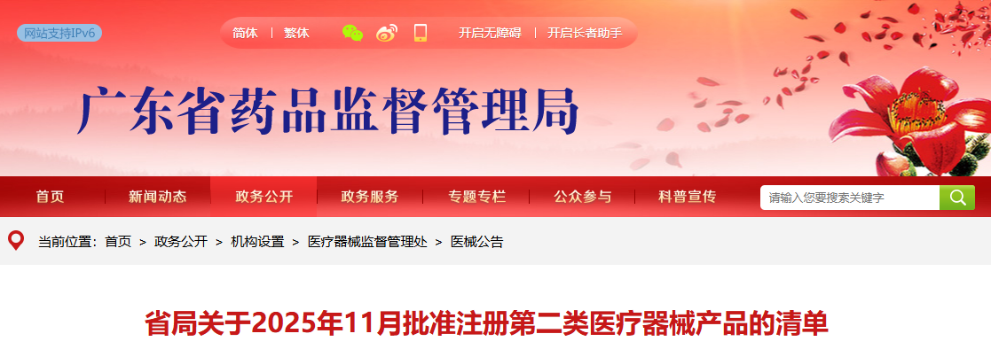 广东省25年11月份共批准注册第二类医疗器械产品256个(附名单)