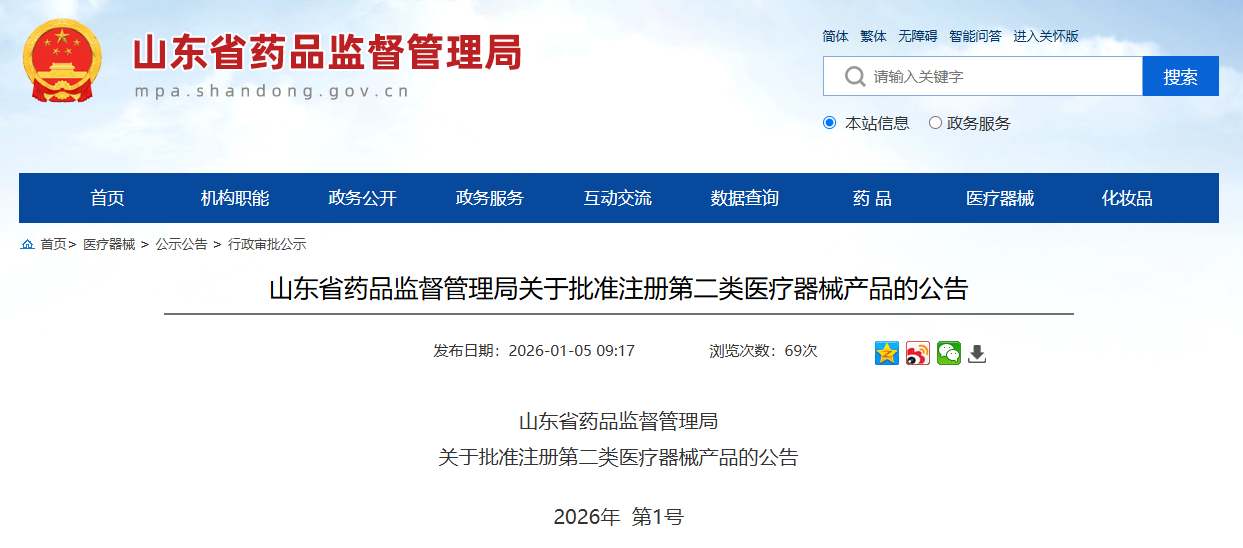 山东省25年12月份共批准注册第二类医疗器械产品68个(附名单)