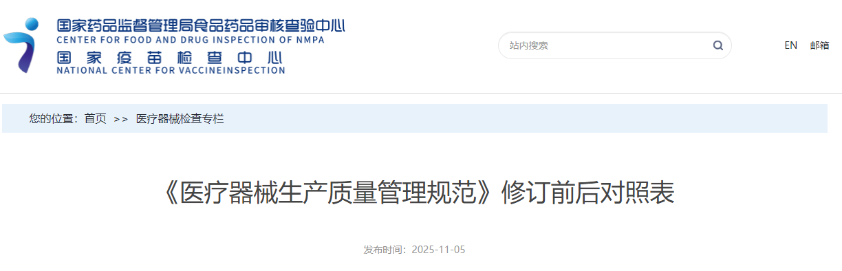 药监局发布《医疗器械生产质量管理规范》修订前后对照表