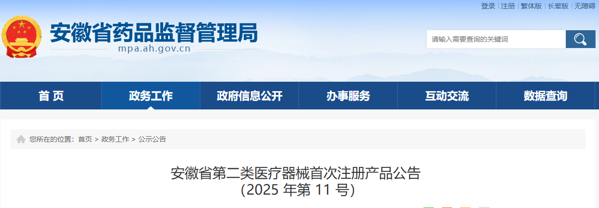 安徽省25年11月份共批准首次注册第二类医疗器械产品24个(附名单)