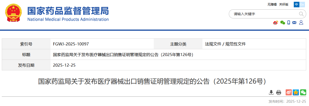 2026年5月1日起,《医疗器械出口销售证明管理规定》实施!