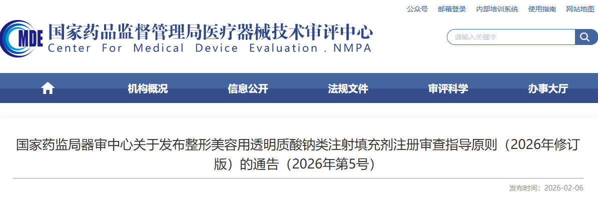 重磅!整形美容用透明质酸钠类注射填充剂注册审查指导原则(2026年修订版)发布!