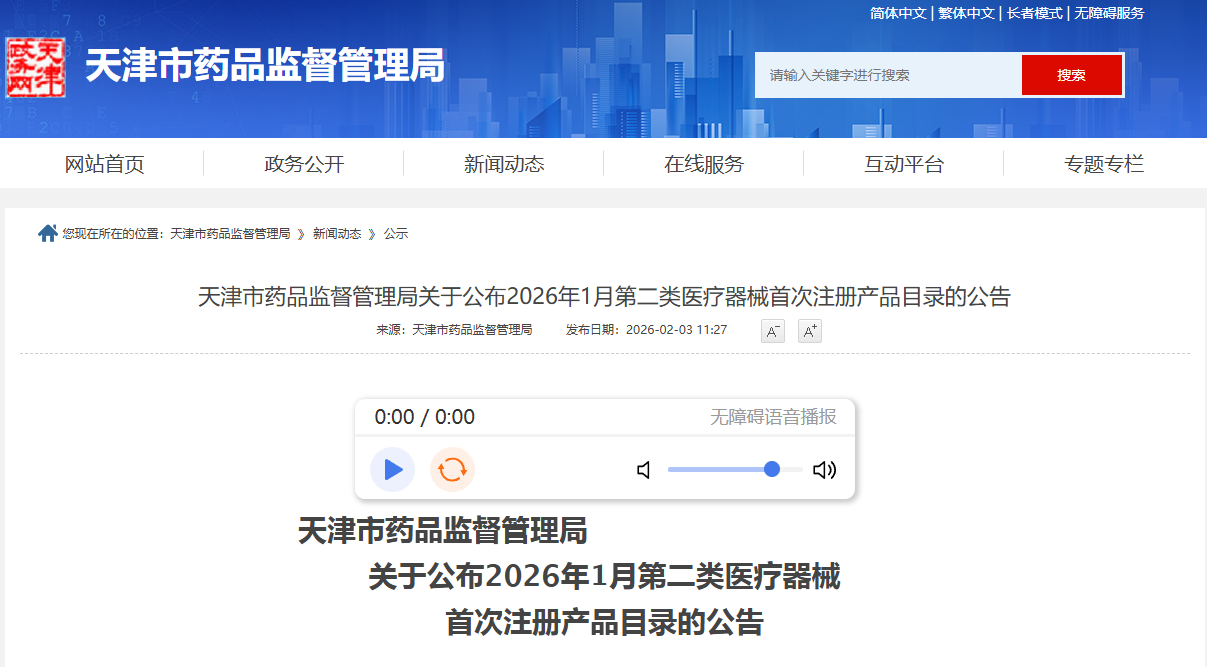 天津市26年1月批准19个第二类医疗器械首次注册产品(附名单)